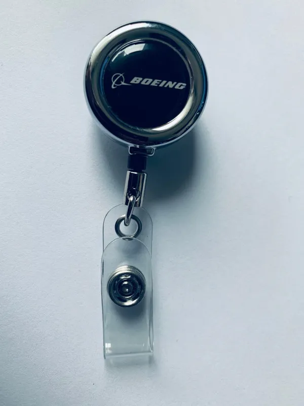 Original Boeing Ausweishalter/Badge - Belastbare, ausziehbare Nylonschnur mit Ausweisclip. Gehäuse aus Aluminium das sich bequem an Kragen oder Tasche befestigen lässt. Mit Boeing Logo